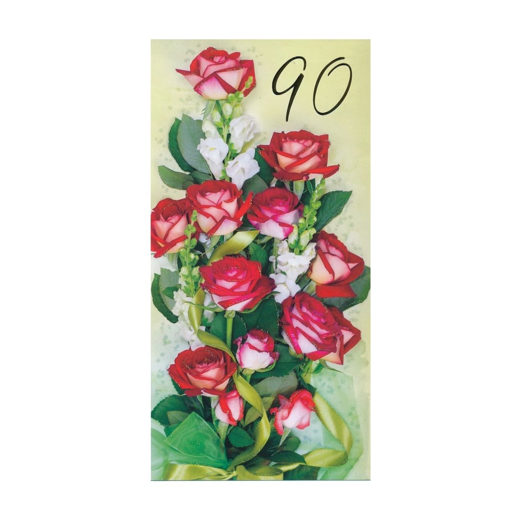 Õnnitluskaart "Punased roosid ja valged levkoid 90"