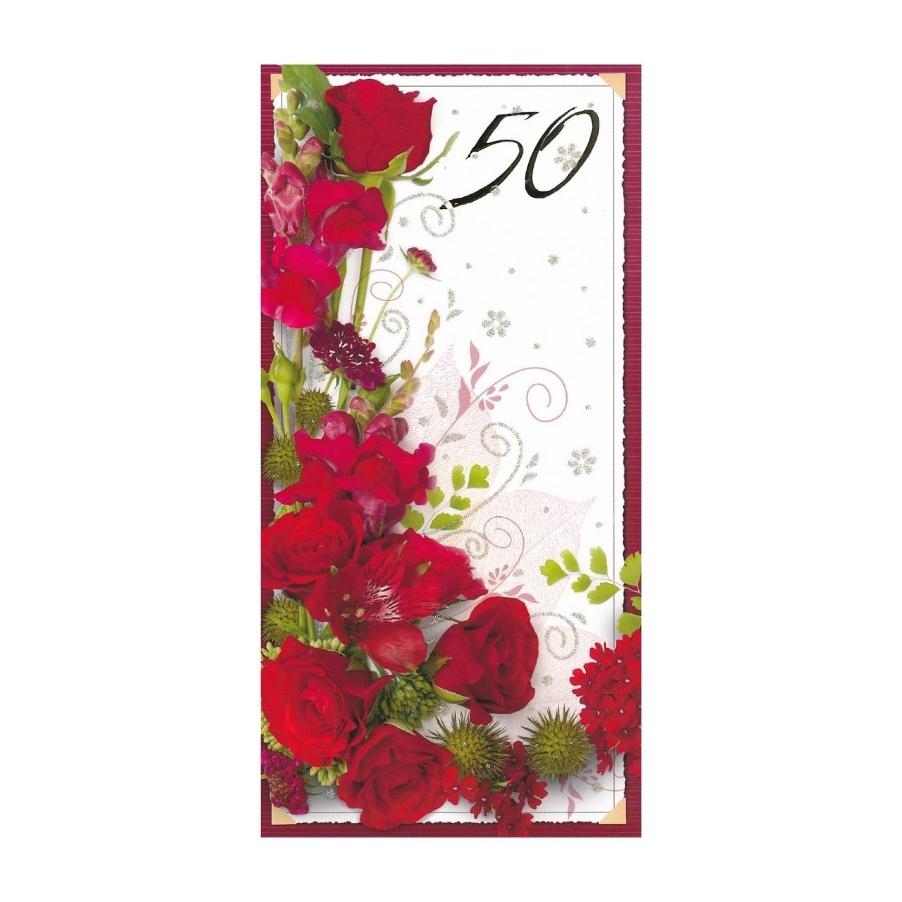 Õnnitluskaart "Punased roosid punase raamiga 50"