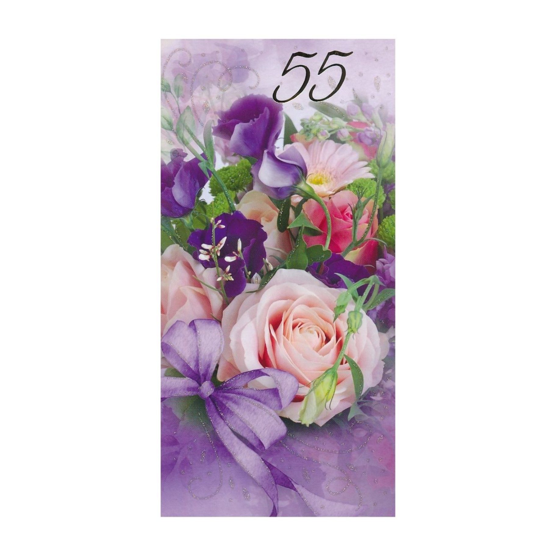 Õnnitluskaart "Roosa roos lilla lipsuga 55"
